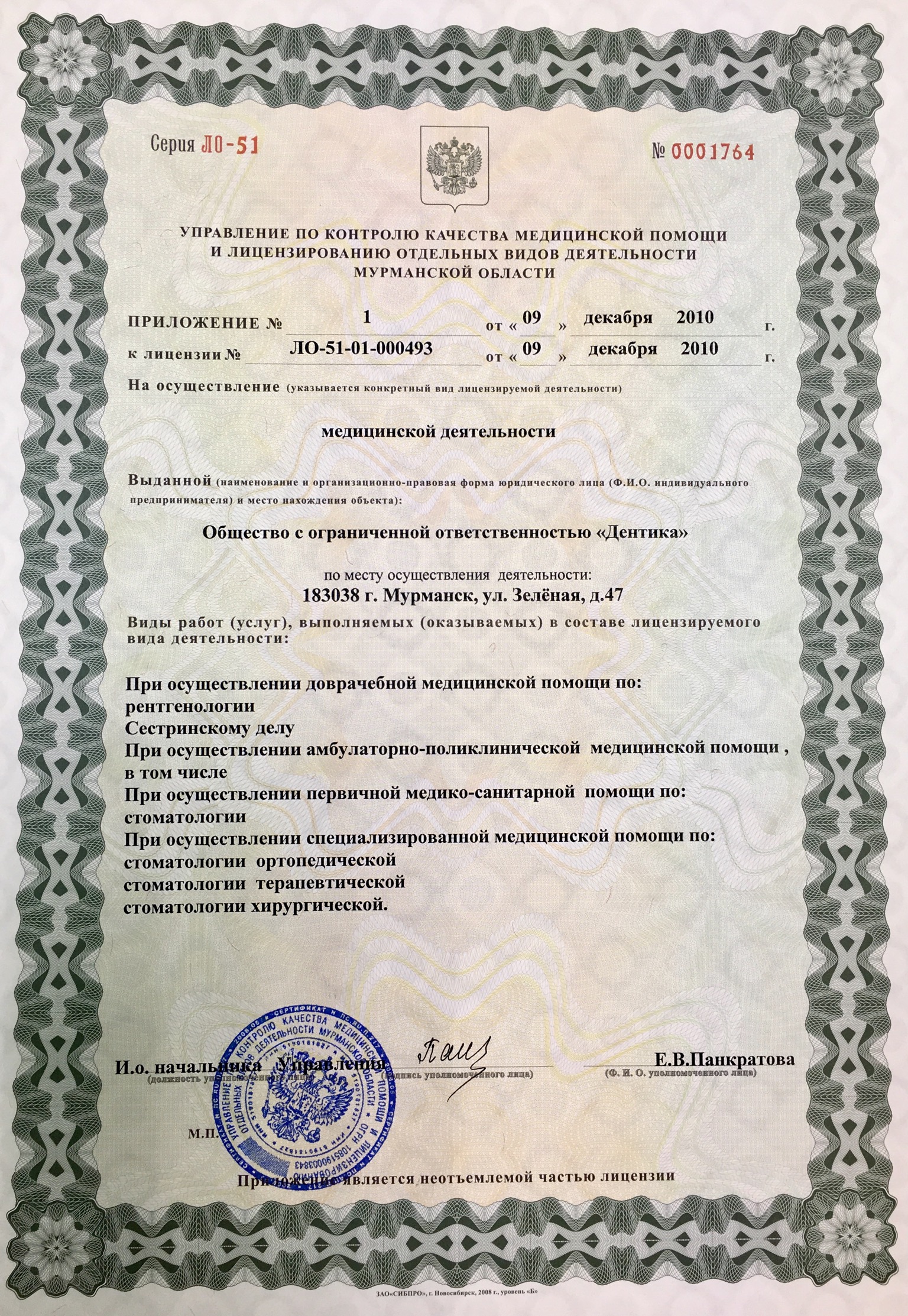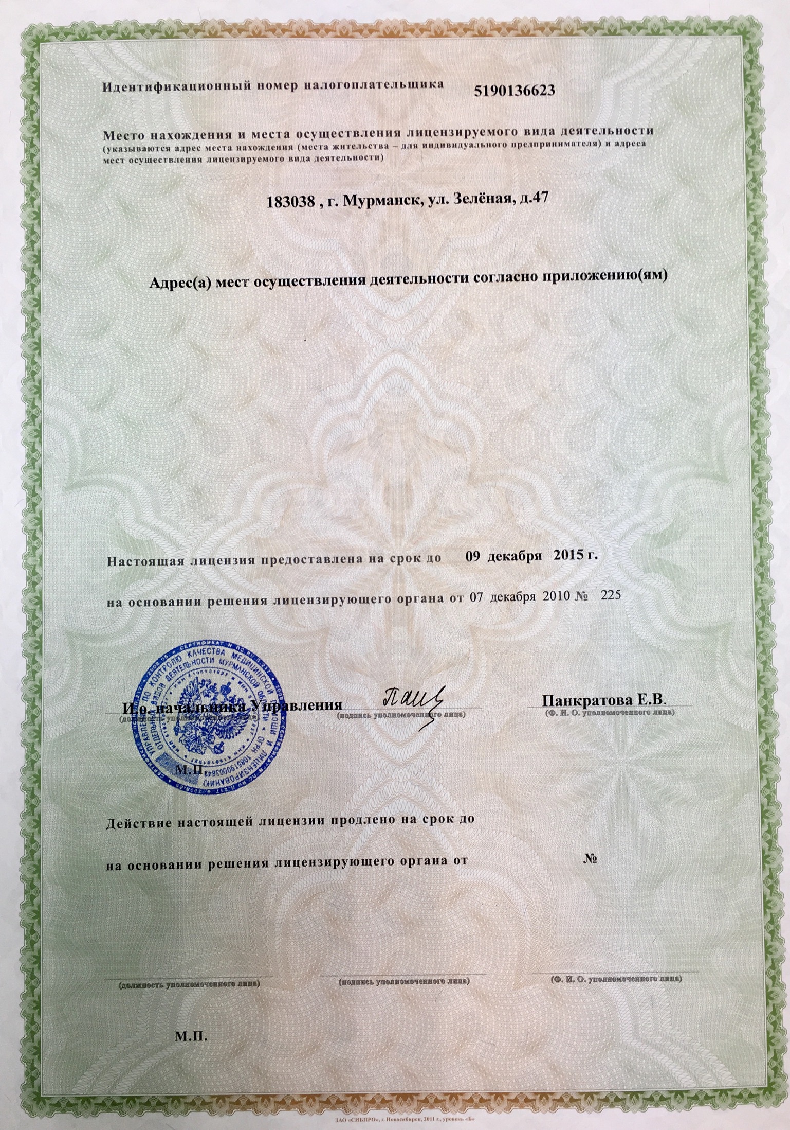 Адрес приема: г. Мурманск, ул. Зеленая, 47